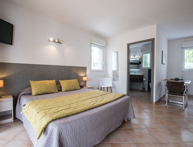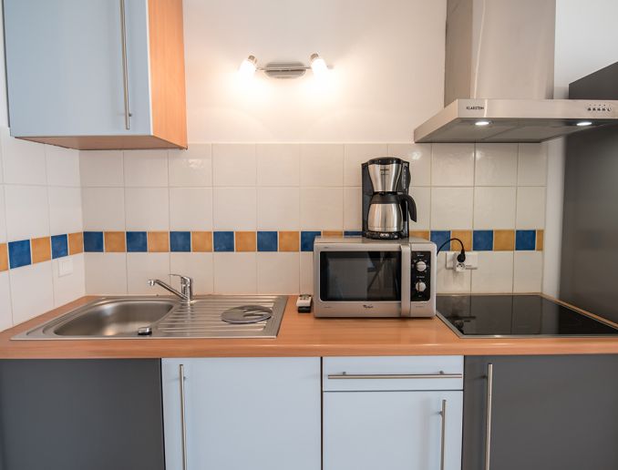The studios of the Résidence Les Alizés are air-conditioned, fitted out for 2 people with an equipped kitchen (hotplates, coffee maker, microwave, fridge-top) and dining area.